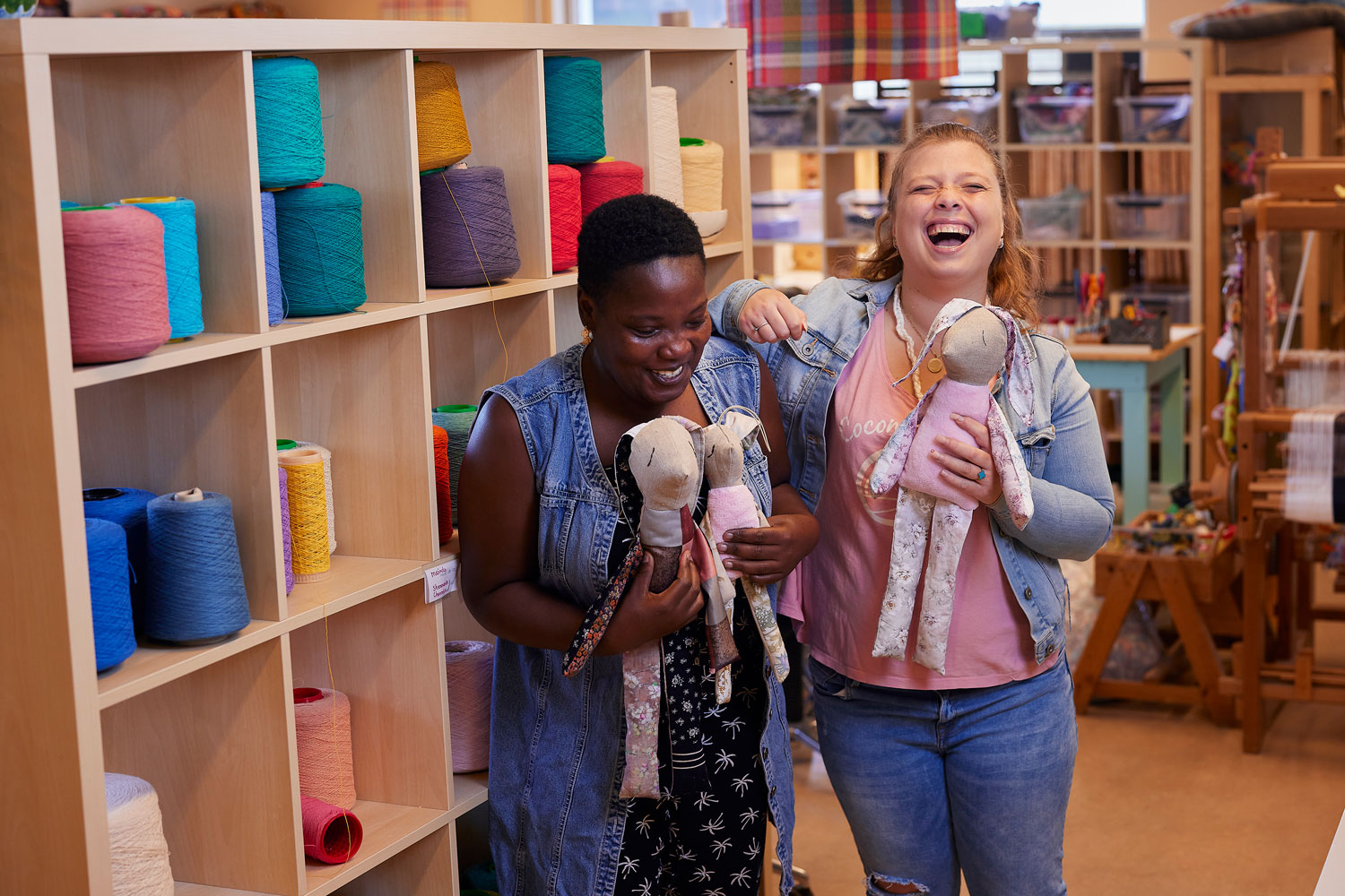 Onze textielateliers bevinden zich in Amsterdam Noord en Amsterdam West, waar makers met veel plezier werken aan ambachtelijke producten met een unieke twist. Van het naaien van kookschorten tot het weven van theedoeken en het borduren op boekjes – elk product is met zorg en passie ontworpen en gemaakt door de makers. Het is een plek waar creativiteit en vakmanschap samenkomen, en waar de makers hun talenten tot leven brengen!