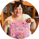 Priscilla ken je misschien nog uit onze conceptstore, maar inmiddels werkt ze met veel enthousiasme in het textielatelier in West. Ze werkt graag in thema’s; dieren, het weer, kerst… noem maar op. Een echte creatieve duizendpoot! En wat ze het allerliefst tekent? Hartjes. Daar wordt ze écht blij van, en dat zie je terug in haar werk.