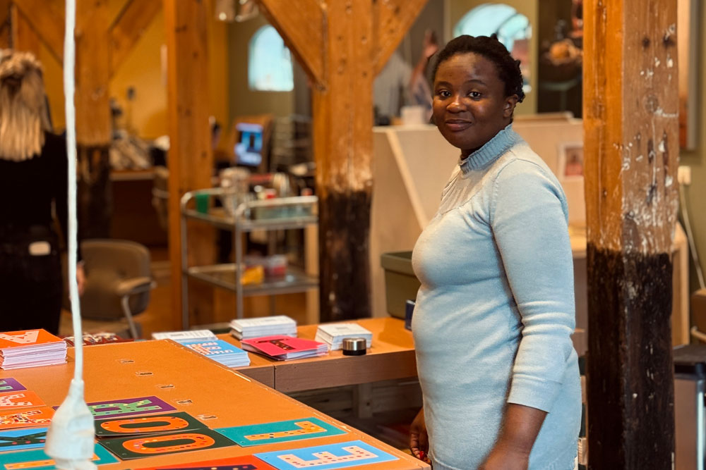 Naast onze zichtbare makers werkt er ook een grote groep talenten wat meer achter de schermen. Ook zij dragen vol enthousiasme bij! Zo maken zij onder andere ons gestempelde inpakpapier en rijgen zij de mooiste sieraden.