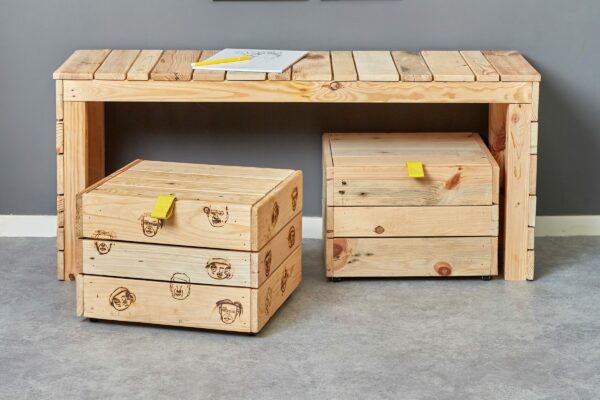 Deze open kratten maken deel uit van onze pallethouten meubellijn.