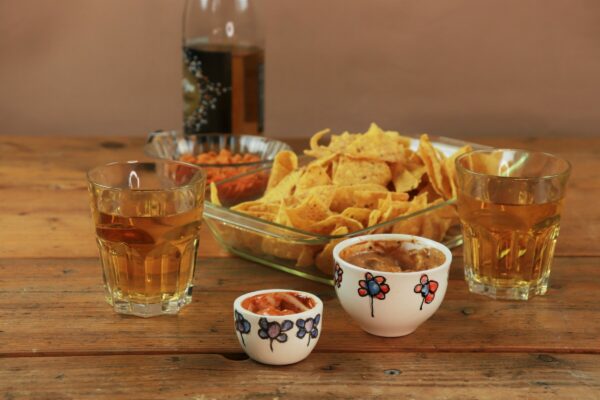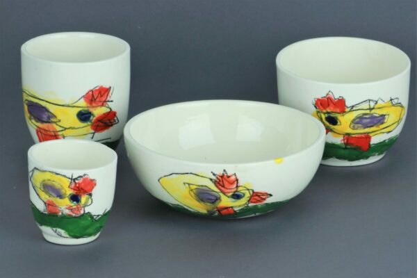 - Gemaakt van aardewerk gietklei, glazuurpotlood en transparant glazuur
