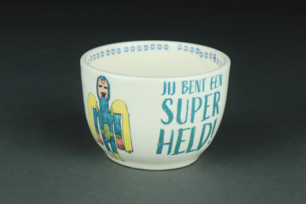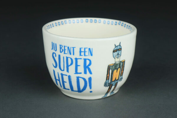 - Elke kop en deksel portretteren in reliëf één van de makers, welk portret je ontvangt is een verrassing
